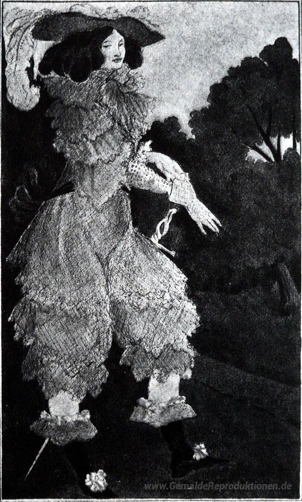 Wir bieten Ihnen eine handgefertigte Reproduktion auf Leinwand des berühmten Kunstwerks 'Mademoiselle de Maupin' von Aubrey Beardsley, aus dem Reproduktionsmuseum.