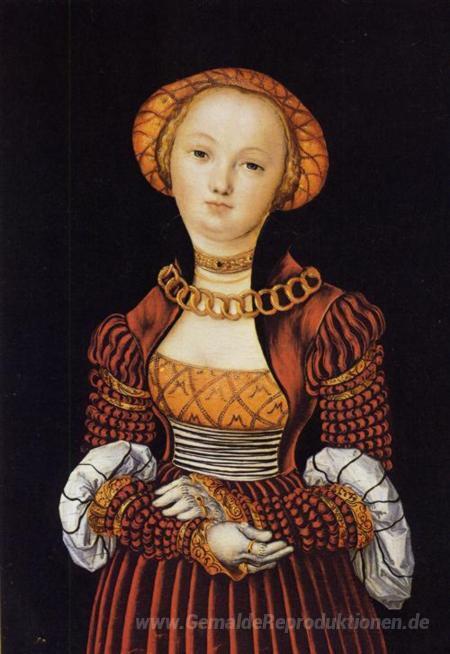 Wir bieten Ihnen eine handgefertigte Reproduktion auf Leinwand des berühmten Kunstwerks 'Magdalene von Sachsen' von Lucas Cranach the Elder, aus dem Reproduktionsmuseum.