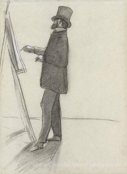 Wir bieten Ihnen eine handgefertigte Reproduktion auf Leinwand des berühmten Kunstwerks 'Manet und seine Staffelei' von Frederic Bazille, aus dem Reproduktionsmuseum.
