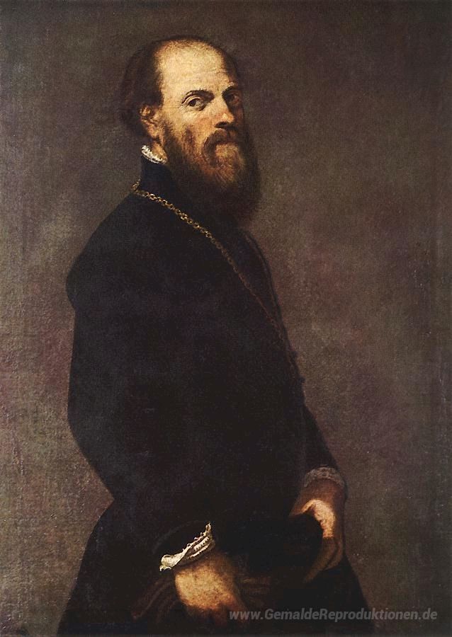 Wir bieten Ihnen eine handgefertigte Reproduktion auf Leinwand des berühmten Kunstwerks 'Mann mit Goldkette' von Tintoretto, aus dem Reproduktionsmuseum.