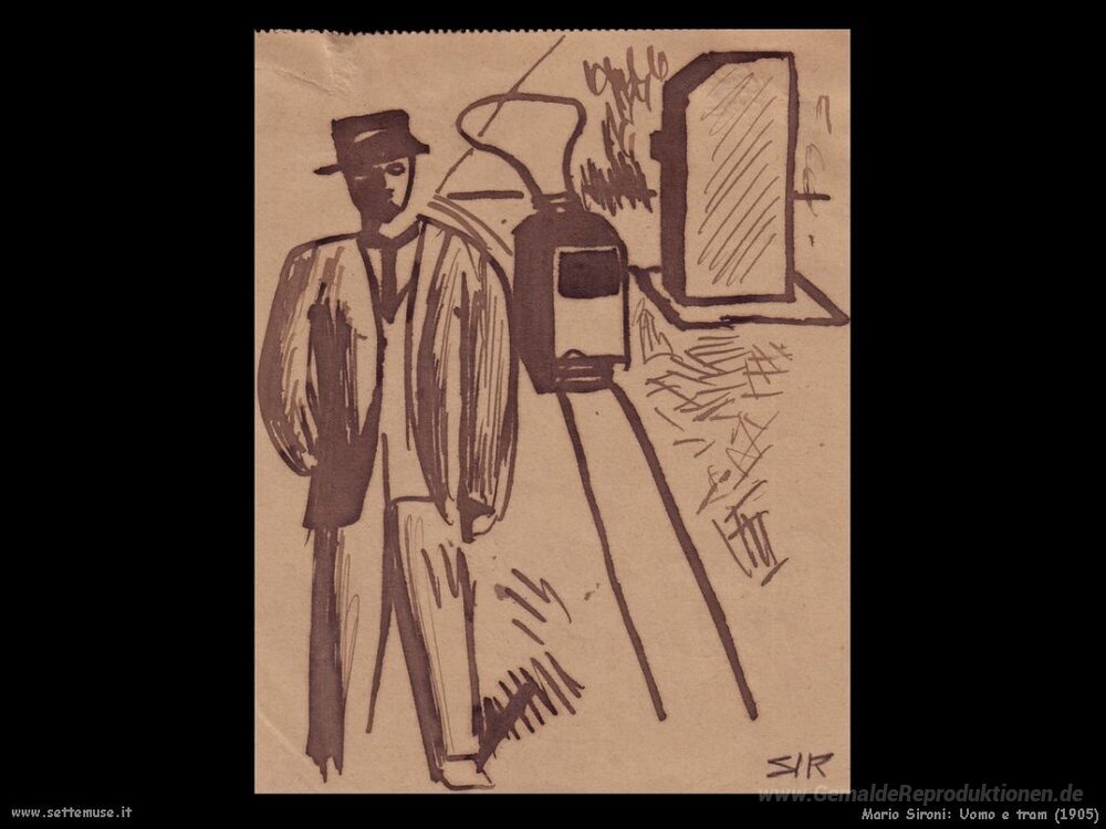 Wir bieten Ihnen eine handgefertigte Reproduktion auf Leinwand des berühmten Kunstwerks 'Mann und Straßenbahn' von Mario Sironi, aus dem Reproduktionsmuseum.