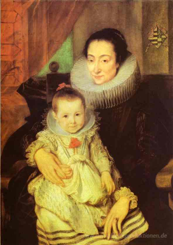 Wir bieten Ihnen eine handgefertigte Reproduktion auf Leinwand des berühmten Kunstwerks 'Marie Clarisse Ehefrau von Jan. Woverius, mit ihrem Kind' von Anthony van Dyck, aus dem Reproduktionsmuseum.