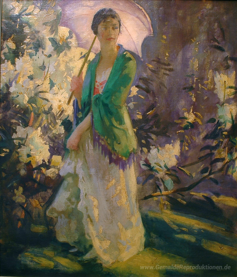 Wir bieten Ihnen eine handgefertigte Reproduktion auf Leinwand des berühmten Kunstwerks 'Marie im Garten' von Peder Severin Kroyer, aus dem Reproduktionsmuseum.