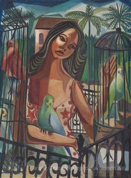 Wir bieten Ihnen eine handgefertigte Reproduktion auf Leinwand des berühmten Kunstwerks 'Mulata e Pássaros' von Emiliano Di Cavalcanti, aus dem Reproduktionsmuseum.