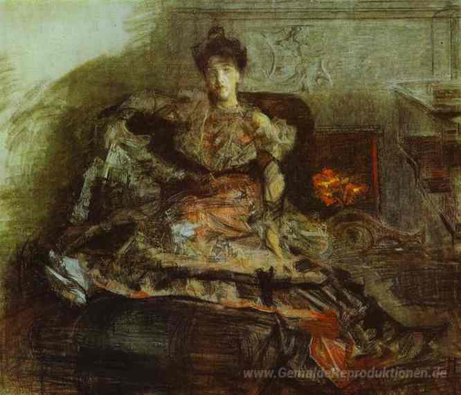 Wir bieten Ihnen eine handgefertigte Reproduktion auf Leinwand des berühmten Kunstwerks 'Nach dem Konzert Porträt von Nadezhda Zabela' von Mikhail Vrubel, aus dem Reproduktionsmuseum.