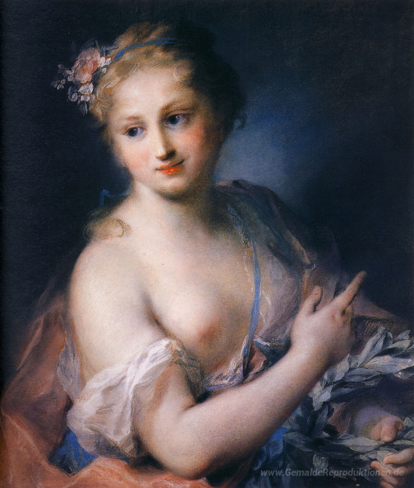 Wir bieten Ihnen eine handgefertigte Reproduktion auf Leinwand des berühmten Kunstwerks 'Nymph gefolgt von Apollo' von Maurice Quentin de La Tour, aus dem Reproduktionsmuseum.