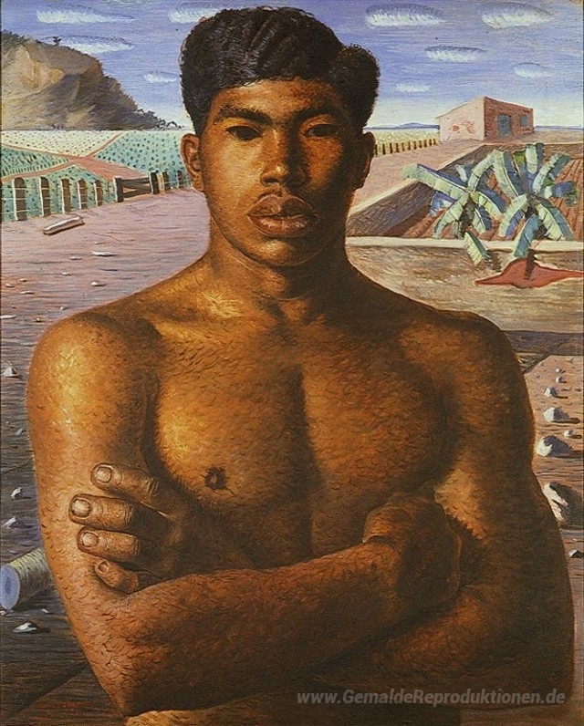 Wir bieten Ihnen eine handgefertigte Reproduktion auf Leinwand des berühmten Kunstwerks 'O Mestiço' von Candido Portinari, aus dem Reproduktionsmuseum.