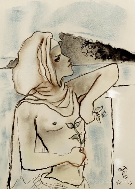 Wir bieten Ihnen eine handgefertigte Reproduktion auf Leinwand des berühmten Kunstwerks 'Ohne Titel' von Jean Cocteau, aus dem Reproduktionsmuseum.