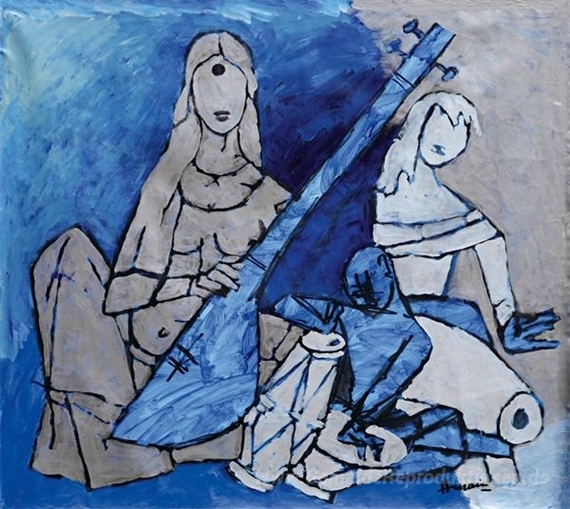 Wir bieten Ihnen eine handgefertigte Reproduktion auf Leinwand des berühmten Kunstwerks 'Ohne Titel' von M.F. Husain, aus dem Reproduktionsmuseum.