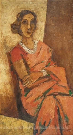 Wir bieten Ihnen eine handgefertigte Reproduktion auf Leinwand des berühmten Kunstwerks 'Ohne Titel' von M.F. Husain, aus dem Reproduktionsmuseum.