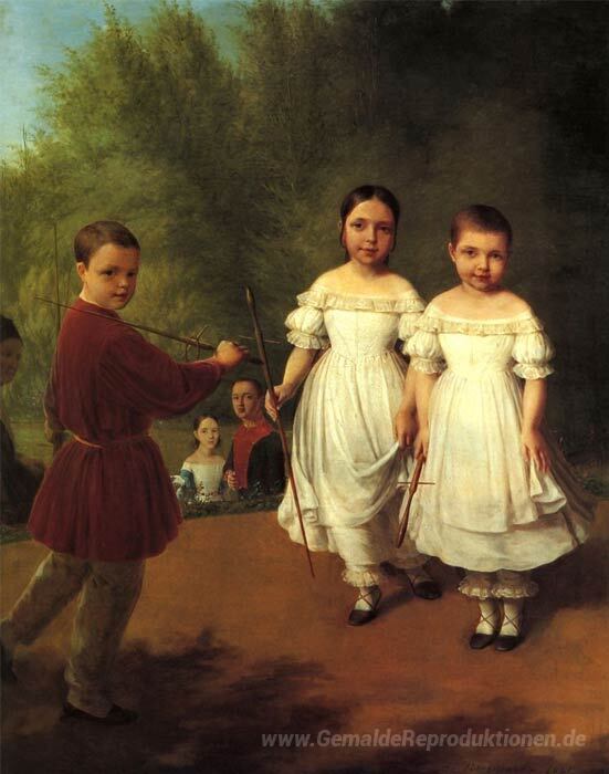 Wir bieten Ihnen eine handgefertigte Reproduktion auf Leinwand des berühmten Kunstwerks 'Panaevs Kinder' von Alexey Venetsianov, aus dem Reproduktionsmuseum.