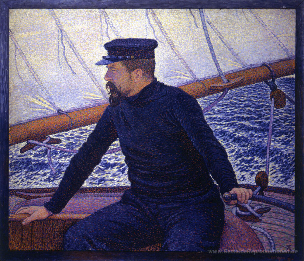 Wir bieten Ihnen eine handgefertigte Reproduktion auf Leinwand des berühmten Kunstwerks 'Paul Signac an der Spitze von Olympia' von Theo van Rysselberghe, aus dem Reproduktionsmuseum.