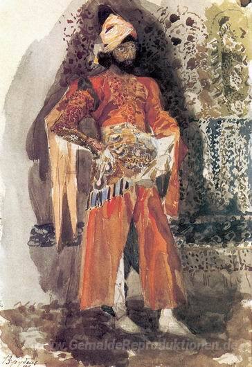 Wir bieten Ihnen eine handgefertigte Reproduktion auf Leinwand des berühmten Kunstwerks 'Persian Prince' von Mikhail Vrubel, aus dem Reproduktionsmuseum.
