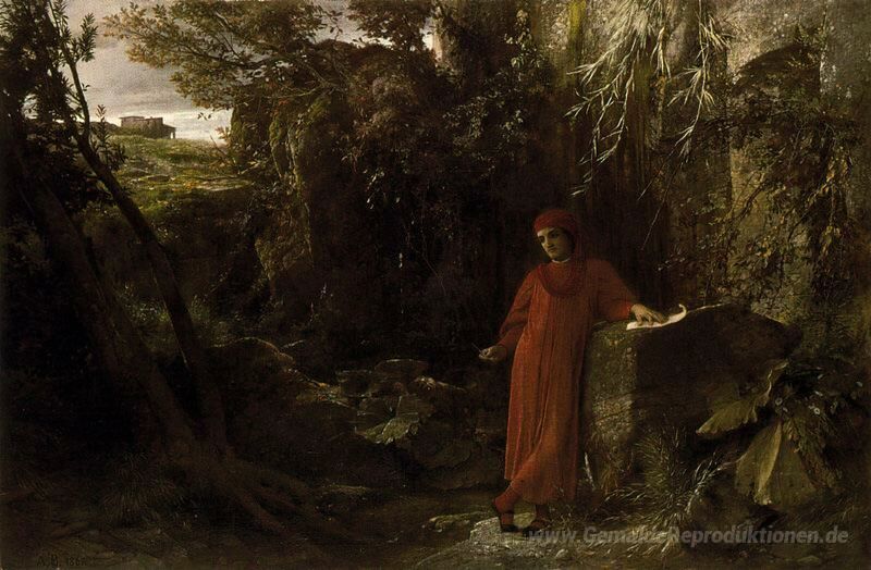 Wir bieten Ihnen eine handgefertigte Reproduktion auf Leinwand des berühmten Kunstwerks 'Petrarca durch den Brunnen von Vaucluse' von Arnold Böcklin, aus dem Reproduktionsmuseum.