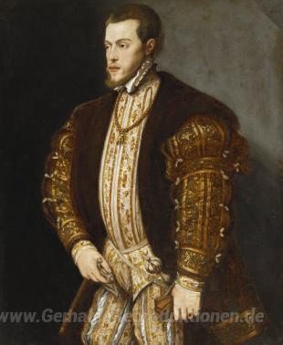 Wir bieten Ihnen eine handgefertigte Reproduktion auf Leinwand des berühmten Kunstwerks 'Philip II von Spanien' von Titian, aus dem Reproduktionsmuseum.