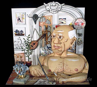Wir bieten Ihnen eine handgefertigte Reproduktion auf Leinwand des berühmten Kunstwerks 'Picasso' von Red Grooms, aus dem Reproduktionsmuseum.