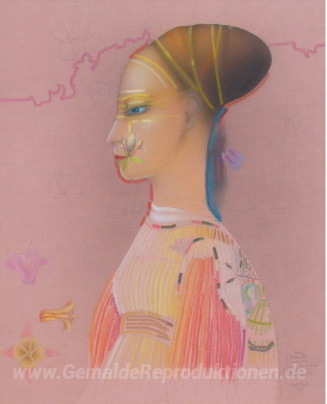 Wir bieten Ihnen eine handgefertigte Reproduktion auf Leinwand des berühmten Kunstwerks 'Pisanelle' von Paul Wunderlich, aus dem Reproduktionsmuseum.