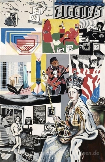 Wir bieten Ihnen eine handgefertigte Reproduktion auf Leinwand des berühmten Kunstwerks 'Pop-Königin' von Erro, aus dem Reproduktionsmuseum.
