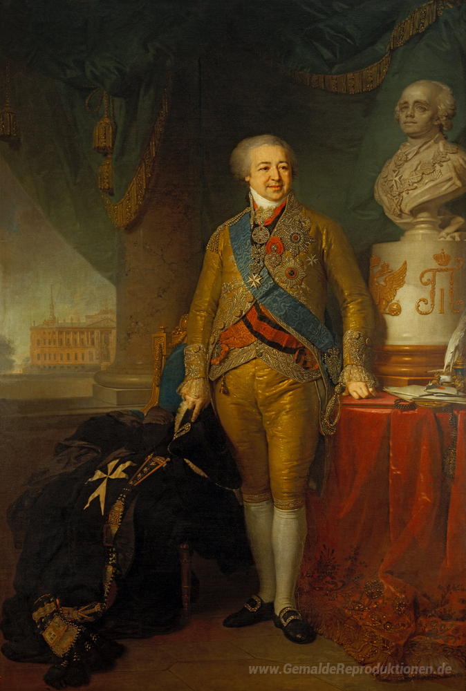 Wir bieten Ihnen eine handgefertigte Reproduktion auf Leinwand des berühmten Kunstwerks 'Porträt der Zählung Alexander Kurakin' von Vladimir Borovikovsky, aus dem Reproduktionsmuseum.