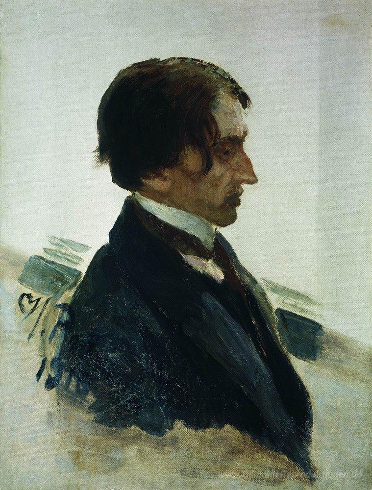 Wir bieten Ihnen eine handgefertigte Reproduktion auf Leinwand des berühmten Kunstwerks 'Porträt des Künstlers Isaak Brodsky' von Ilya Repin, aus dem Reproduktionsmuseum.