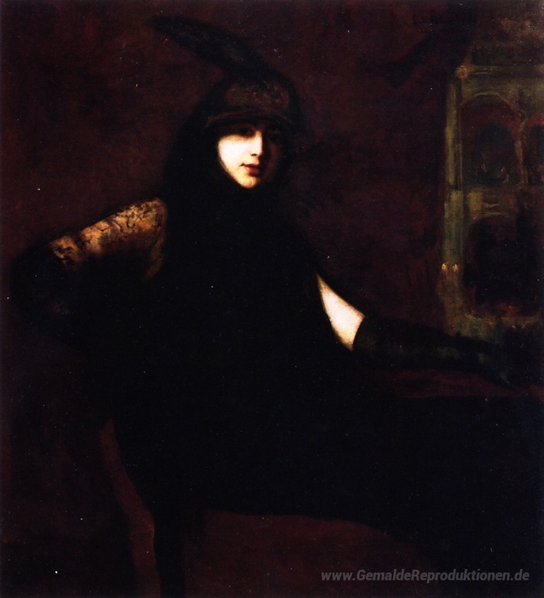 Wir bieten Ihnen eine handgefertigte Reproduktion auf Leinwand des berühmten Kunstwerks 'Porträt einer Dame' von Lilla Cabot Perry, aus dem Reproduktionsmuseum.