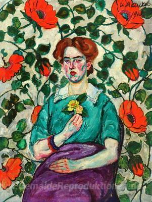 Wir bieten Ihnen eine handgefertigte Reproduktion auf Leinwand des berühmten Kunstwerks 'Porträt einer Frau. Minsk' von Ilya Mashkov, aus dem Reproduktionsmuseum.
