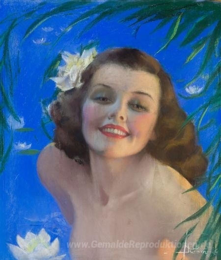 Wir bieten Ihnen eine handgefertigte Reproduktion auf Leinwand des berühmten Kunstwerks 'Porträt einer Frau' von Rolf Amstrong, aus dem Reproduktionsmuseum.
