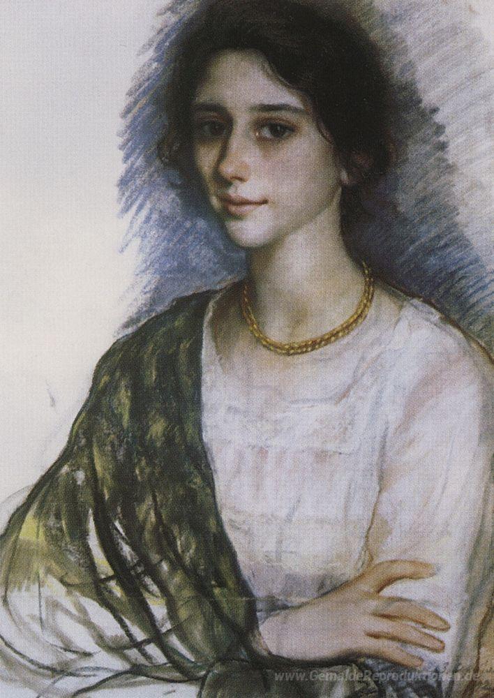 Wir bieten Ihnen eine handgefertigte Reproduktion auf Leinwand des berühmten Kunstwerks 'Porträt einer Frau' von Zinaida Serebriakova, aus dem Reproduktionsmuseum.