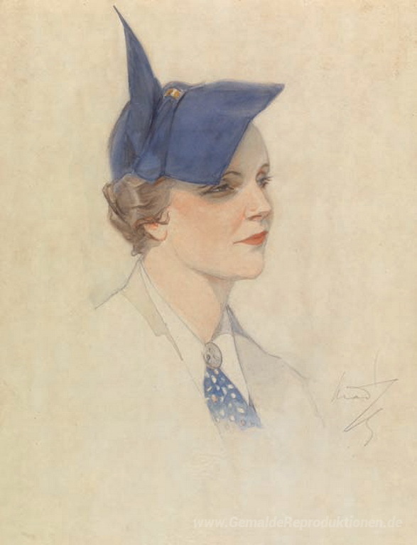 Wir bieten Ihnen eine handgefertigte Reproduktion auf Leinwand des berühmten Kunstwerks 'Porträt einer Frau' von Paul Mathiopoulos, aus dem Reproduktionsmuseum.