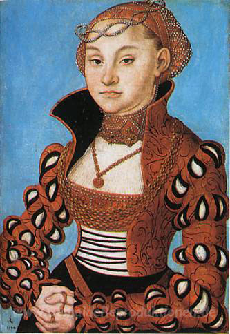 Wir bieten Ihnen eine handgefertigte Reproduktion auf Leinwand des berühmten Kunstwerks 'Porträt einer sächsischen Adligen' von Lucas Cranach the Elder, aus dem Reproduktionsmuseum.