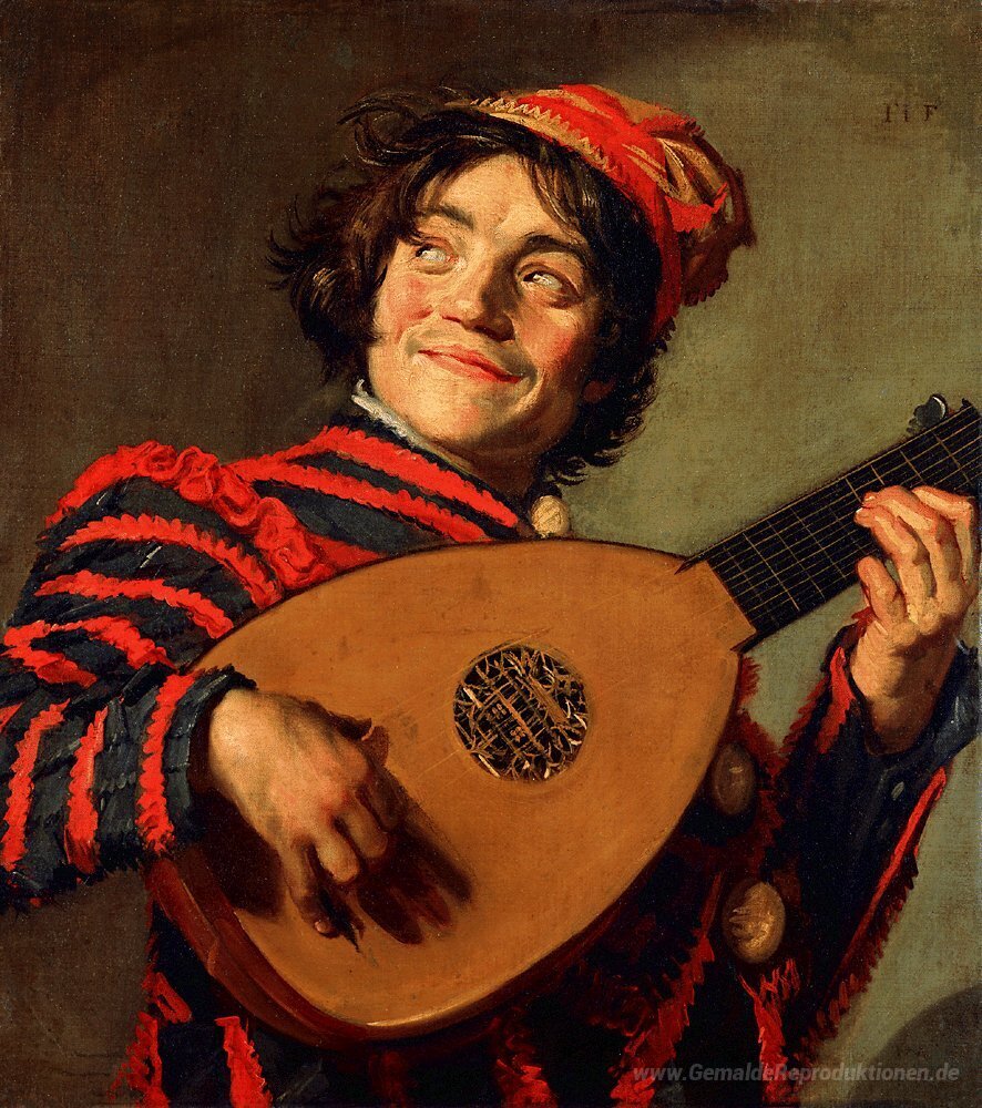 Wir bieten Ihnen eine handgefertigte Reproduktion auf Leinwand des berühmten Kunstwerks 'Porträt einer Spaßvogel mit einem Dichtungskitt' von Frans Hals, aus dem Reproduktionsmuseum.