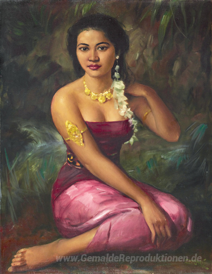 Wir bieten Ihnen eine handgefertigte Reproduktion auf Leinwand des berühmten Kunstwerks 'Porträt einer Tänzerin' von Basuki Abdullah, aus dem Reproduktionsmuseum.