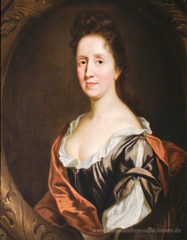 Wir bieten Ihnen eine handgefertigte Reproduktion auf Leinwand des berühmten Kunstwerks 'Porträt einer unbekannten Dame' von John Riley, aus dem Reproduktionsmuseum.