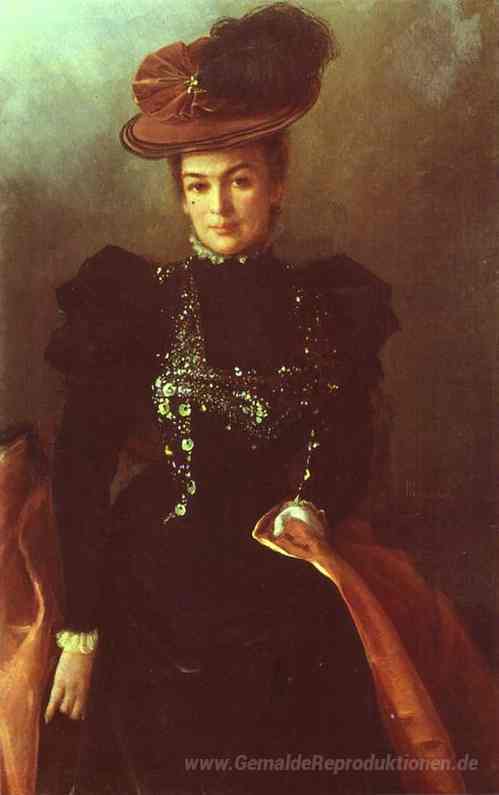 Wir bieten Ihnen eine handgefertigte Reproduktion auf Leinwand des berühmten Kunstwerks 'Porträt einer unbekannten Frau' von Ivan Kramskoy, aus dem Reproduktionsmuseum.