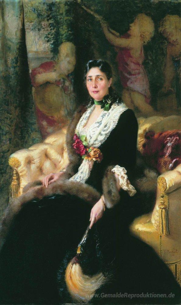 Wir bieten Ihnen eine handgefertigte Reproduktion auf Leinwand des berühmten Kunstwerks 'Porträt einer unbekannten' von Konstantin Makovsky, aus dem Reproduktionsmuseum.