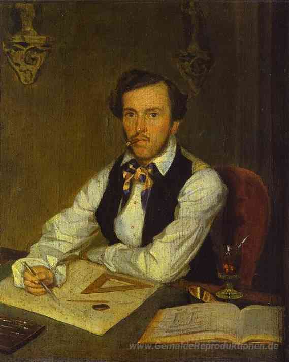 Wir bieten Ihnen eine handgefertigte Reproduktion auf Leinwand des berühmten Kunstwerks 'Porträt eines Architekten' von Pavel Fedotov, aus dem Reproduktionsmuseum.