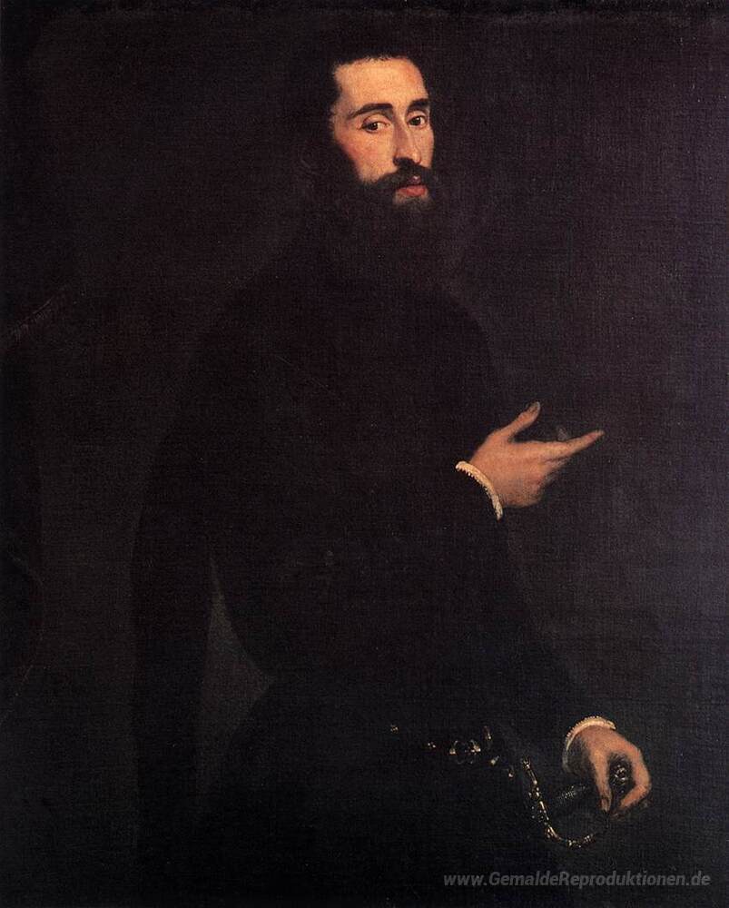 Wir bieten Ihnen eine handgefertigte Reproduktion auf Leinwand des berühmten Kunstwerks 'Porträt eines genuesischen Edelmann' von Tintoretto, aus dem Reproduktionsmuseum.