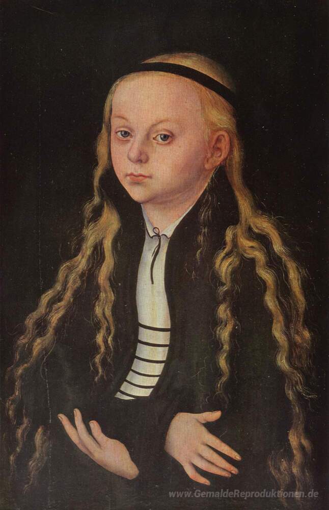 Wir bieten Ihnen eine handgefertigte Reproduktion auf Leinwand des berühmten Kunstwerks 'Porträt eines jungen Mädchens (Magdalena Luther)' von Lucas Cranach the Elder, aus dem Reproduktionsmuseum.