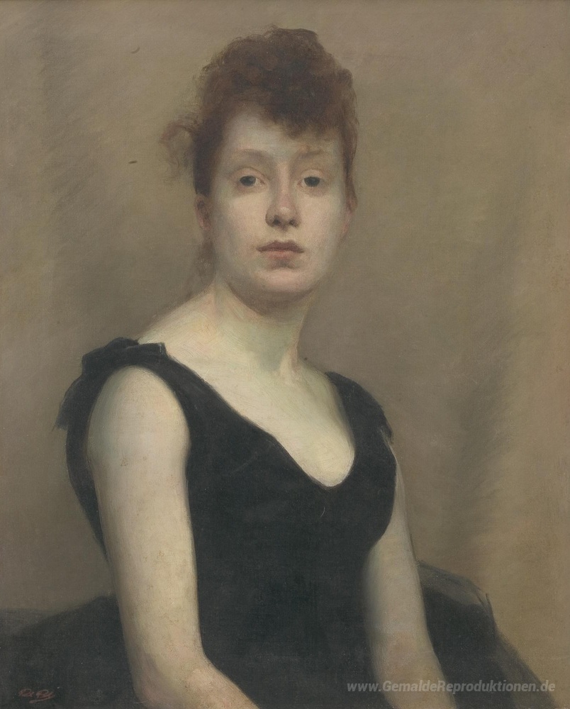 Wir bieten Ihnen eine handgefertigte Reproduktion auf Leinwand des berühmten Kunstwerks 'Porträt eines Mädchens' von Paul Peel, aus dem Reproduktionsmuseum.