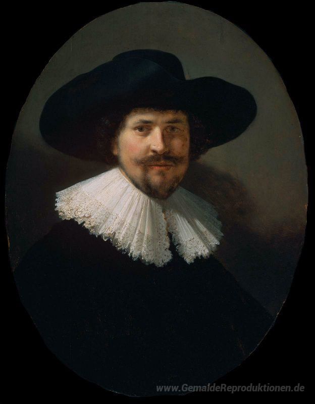 Wir bieten Ihnen eine handgefertigte Reproduktion auf Leinwand des berühmten Kunstwerks 'Porträt eines Mannes trägt einen schwarzen Hut' von Rembrandt, aus dem Reproduktionsmuseum.
