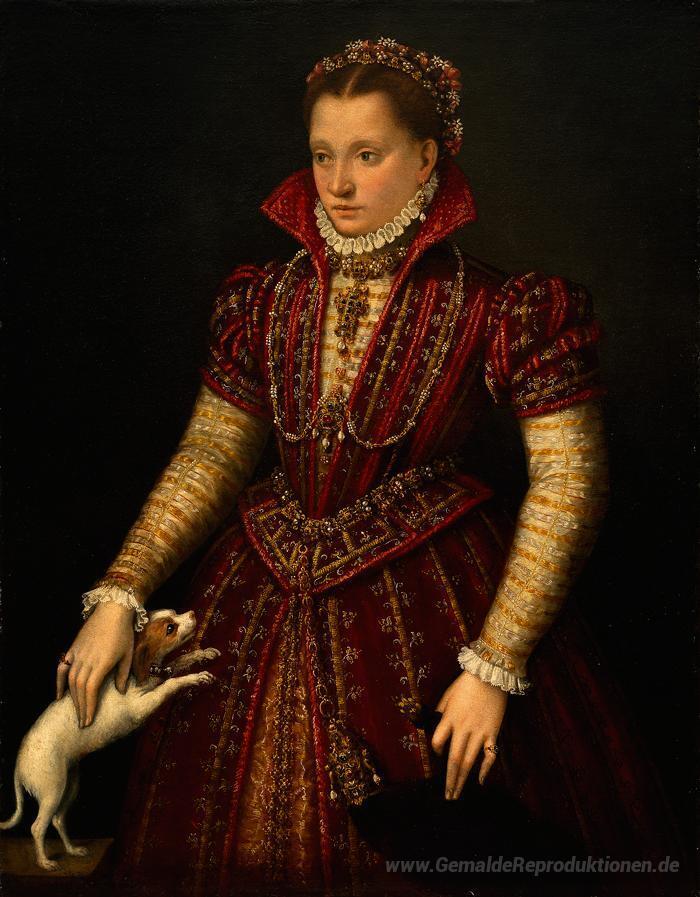 Wir bieten Ihnen eine handgefertigte Reproduktion auf Leinwand des berühmten Kunstwerks 'Porträt eines Noblewoman' von Lavinia Fontana, aus dem Reproduktionsmuseum.