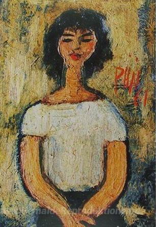 Wir bieten Ihnen eine handgefertigte Reproduktion auf Leinwand des berühmten Kunstwerks 'Porträt' von Bui Xuan Phai, aus dem Reproduktionsmuseum.