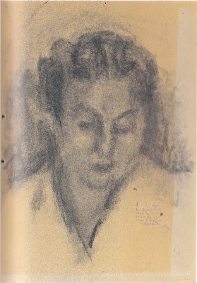 Wir bieten Ihnen eine handgefertigte Reproduktion auf Leinwand des berühmten Kunstwerks 'Porträt' von George Bouzianis, aus dem Reproduktionsmuseum.