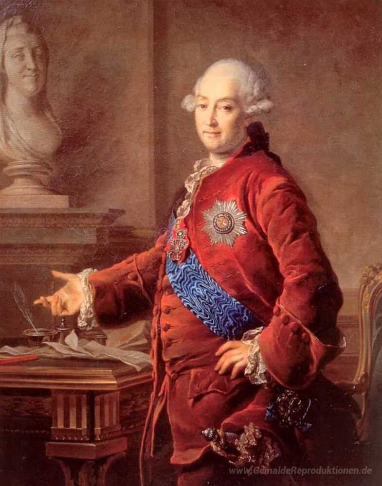 Wir bieten Ihnen eine handgefertigte Reproduktion auf Leinwand des berühmten Kunstwerks 'Porträt von Alexander Golytsyn' von Dmitry Levitzky, aus dem Reproduktionsmuseum.