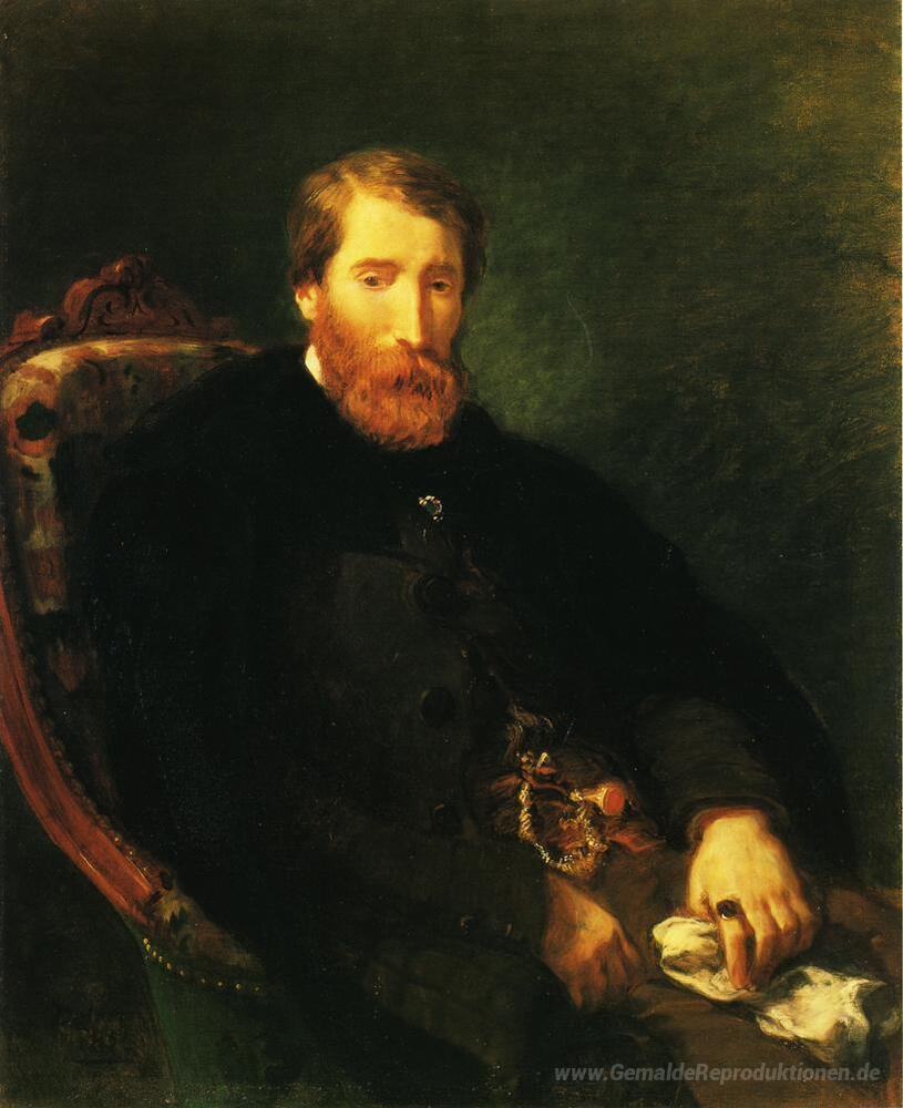 Wir bieten Ihnen eine handgefertigte Reproduktion auf Leinwand des berühmten Kunstwerks 'Porträt von Alfred Bruyas' von Eugene Delacroix, aus dem Reproduktionsmuseum.
