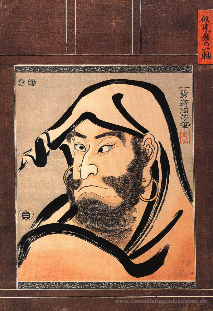 Wir bieten Ihnen eine handgefertigte Reproduktion auf Leinwand des berühmten Kunstwerks 'Porträt von Daruma' von Utagawa Kuniyoshi, aus dem Reproduktionsmuseum.