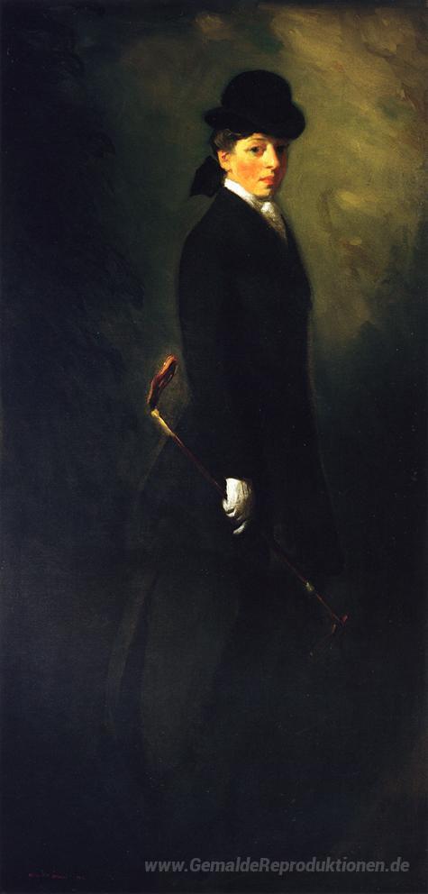 Wir bieten Ihnen eine handgefertigte Reproduktion auf Leinwand des berühmten Kunstwerks 'Porträt von Fräulein Leora Trockner im Reitkostüm' von Robert Henri, aus dem Reproduktionsmuseum.