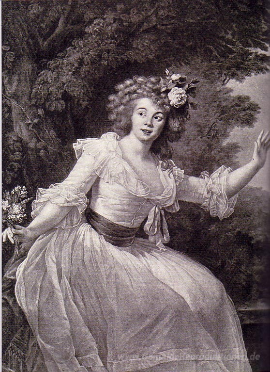 Wir bieten Ihnen eine handgefertigte Reproduktion auf Leinwand des berühmten Kunstwerks 'Porträt von Französisch Schauspielerin Louise Rosalie Dugazon' von Louise Elisabeth Vigee Le Brun, aus dem Reproduktionsmuseum.