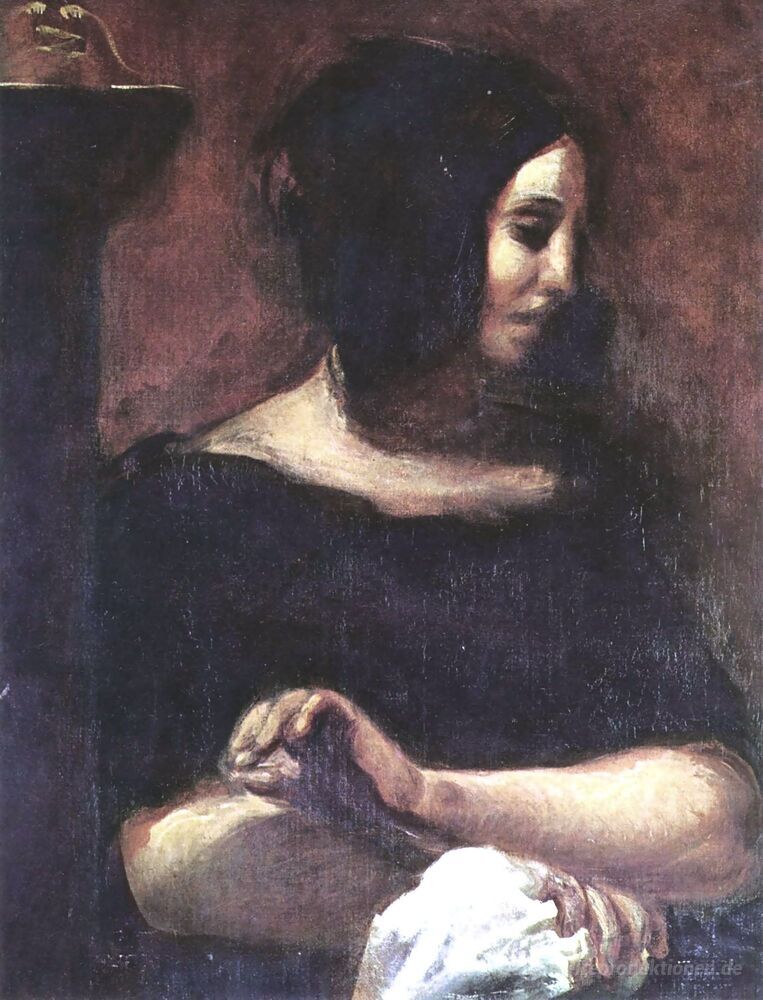 Wir bieten Ihnen eine handgefertigte Reproduktion auf Leinwand des berühmten Kunstwerks 'Porträt von George Sand' von Eugene Delacroix, aus dem Reproduktionsmuseum.