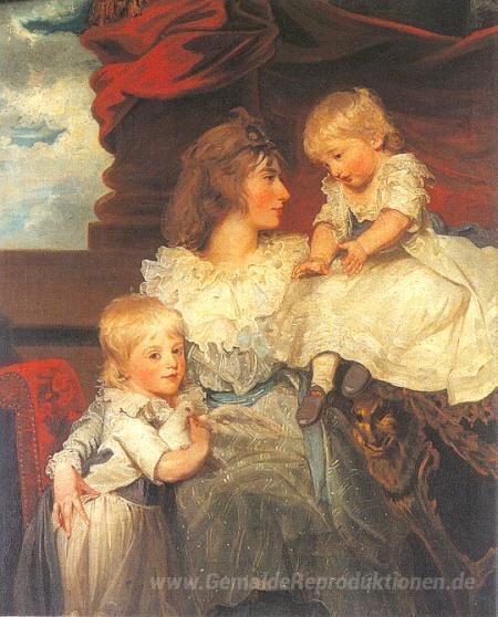 Wir bieten Ihnen eine handgefertigte Reproduktion auf Leinwand des berühmten Kunstwerks 'Porträt von Harriet, Viscountess Duncannon mit ihren Söhnen' von John Hoppner, aus dem Reproduktionsmuseum.